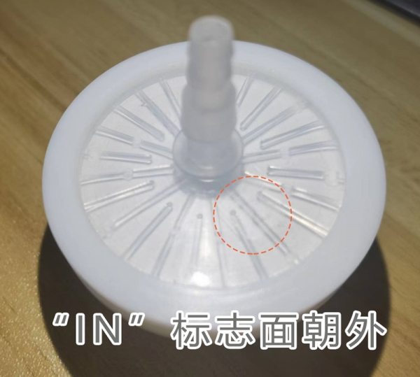 更換前檢查進(jìn)氣口氣濾有無(wú)雜質(zhì)物堵住,HYS1000使用的是透明外置水阱過(guò)濾器,如果目測(cè)碟面粉塵顆粒物有污染,需更換新的水阱過(guò)濾器,帶"IN"面朝外,注意不要裝反,否則會(huì)造成污染物吸入。