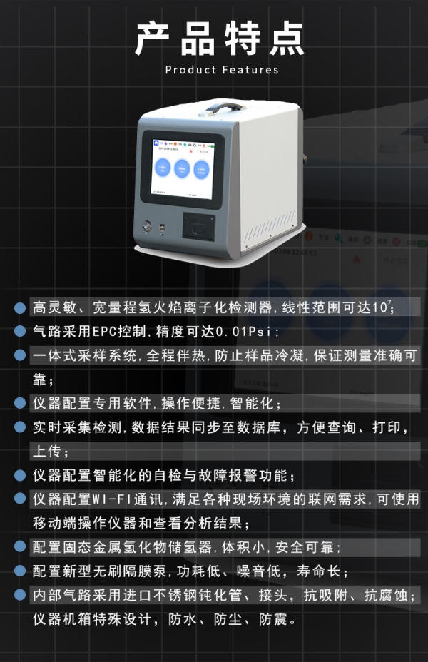 HYS-2000便攜式甲烷/非甲烷總烴氣相色譜儀采用FID技術(shù),響應(yīng)速度快,可測量環(huán)境空氣及固定污染源廢氣中的總烴和甲烷。分析系統(tǒng)氣路全程高溫伴熱,有效防止樣品冷凝或流失。分析軟件具有連續(xù)取樣、連續(xù)分析、結(jié)果數(shù)據(jù)入庫等功能,人機界面友好,方便學(xué)習(xí)使用。