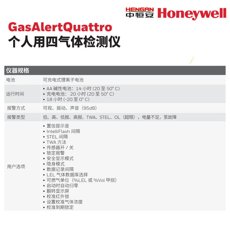GasAlert Quattro 個(gè)人用四氣體檢測(cè)儀 便攜式氣體檢測(cè)儀 霍尼韋爾